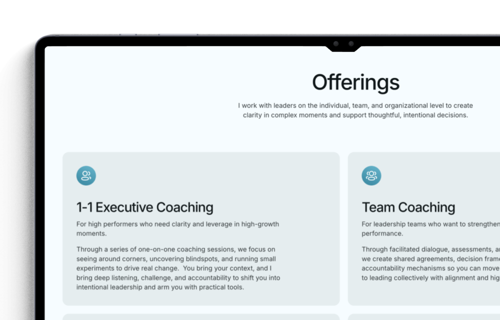 We created a website that positions Pooja as a strategic partner for C-suite and VP-level leaders navigating scale, complexity, and constant decision pressure.